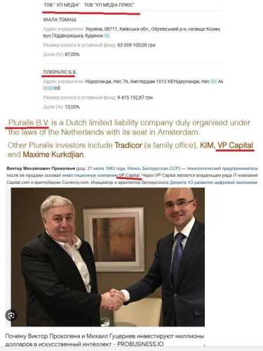 «Російський олігарх Гуцерієв – один із акціонерів Укрправди. 31 січня володарем 13% в ТОВ «УП МЕДІА ПЛЮС» і «УП МЕДІА» стала компанія Pluralis B.V., офіційним інвестором якої є компанія VP Capital (Лондон), якою володіє білоруський мультимільйонер Віктор Михайлович Прокопеня (1983 р.н., Мінськ). Головним партнером Прокопені є Саід Гуцерієв (1988), син російського мільярдера Микаїла Гуцерієва (БИНбанк, Русснефть, Эльдорадо), близький до Лукашенка», – написав він.