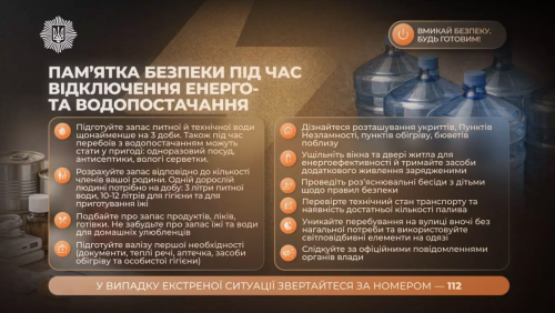 Міністерство внутрішніх справ України знову звертає увагу громадян на необхідність бути уважними під час ворожих атак на важливу інфраструктуру. Супротивник продовжує бити по енергетичних об’єктах, маючи намір позбавити українців електрики, опалення та води. За таких обставин дуже важливо знати, як поводитися, і заздалегідь підготуватися до можливих проблем.
