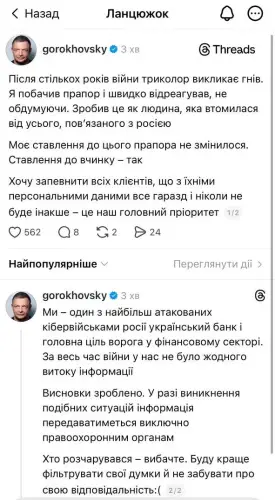Гороховський також запевнив клієнтів, що їхні особисті відомості й надалі в безпеці.