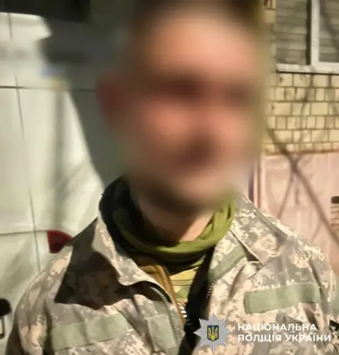 У поліції оприлюднили світлину затриманого, де він одягнений у військовий однострій.
