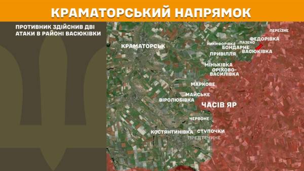 На Краматорському напрямку ворог провів дві атаки в районі Васюківки.