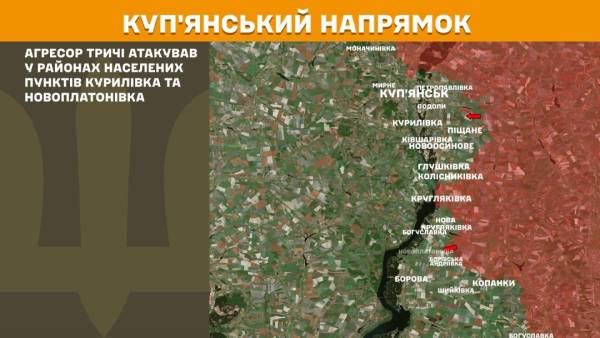 На Куп’янському напрямку армія РФ тричі атакувала в районах Курилівки та Новоплатонівки.