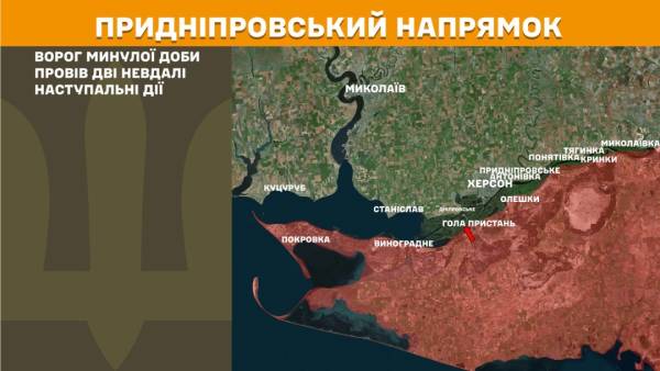 На Придніпровському напрямку росіяни минулої доби провели дві безуспішні наступальні дії.